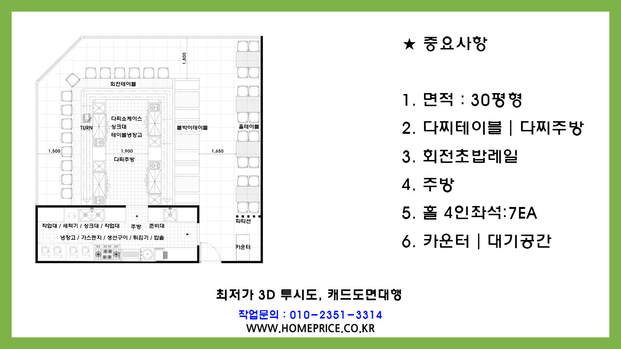 3.자체설계 인력이 불필요하고 편리한 #스시전문점투시도 제작 설계의뢰